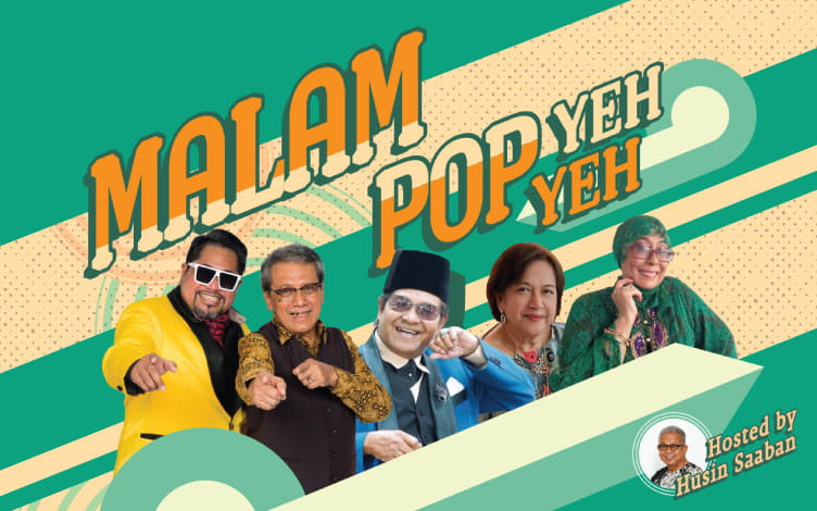 Ayuh, tampil bergaya dengan seluar ‘bell bottom’, dan luangkan malam anda untuk menikmati irama pop yeh yeh kegemaran anda! Diacarakan oleh pelawak veteran Husin Saaban, Malam Pop Yeh Yeh memaparkan ikon setempat, Asmuri dari kugiran The Hornets, Asmah Atan dan June Abdullah, berserta penyanyi pop yeh yeh generasi baru, Rudi Salim bersama The Wismas II. Tidak lupa juga penyanyi undangan dari Malaysia, Dato L. Ramli!