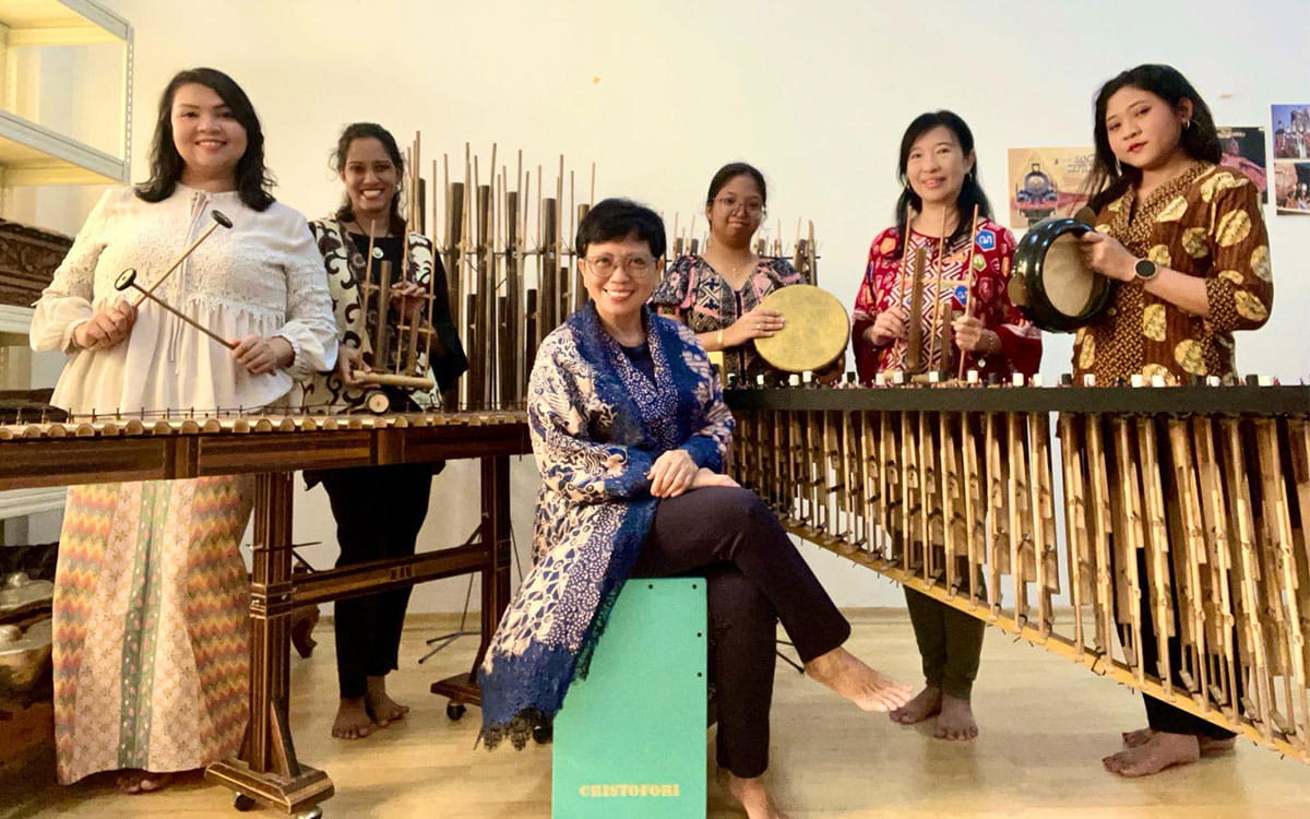 The angklung – alat muzik buluh tradisional Indonesia berasal dari Jawa Barat – sinonim dengan budaya rakyat, sambutan perayaan dan pendidikan muzik. Sejak awal 1960-an tahun, ia telah mendapat perhatian kukuh di Singapura, hasil pengaruh Pak Kasur laganda dari Jakarta, yang telah diundang untuk mengajar alat muzik itu kepada kanak-kanak di sekolah. Dua dekad kemudian, bekas konduktor pelajar Orkestra Angklung Sekolah Perempuan Raffles, Cik Faridah Jamal, terdorong menjadi perintis yang mengajar angklung sepenuh masa. Pada 2022, sebagai pengasas dan pengarah Perhubungan Muzik Etnik (EMC), beliau bekerjasama dengan Cik Chan Mei Yin, ketua pegawai eksekutif Gamelan Asmaradana Ltd (GA), untuk membentuk Empayar Angklung – terdiri daripada bekas pelajar angklung, pemuzik GA dan anggota komuniti besar.