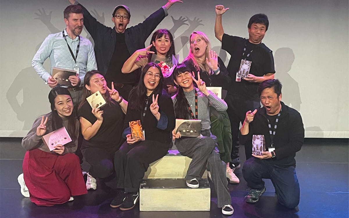 Grace and Manli Siu (centre), co-chairs of Horizons Collective, with the creative team of <em>Drift</em> by Pui-Ka Cheng. <em>Drift</em> was commissioned by Lowry and Horizons Collective, and supported by New Earth Theatre.