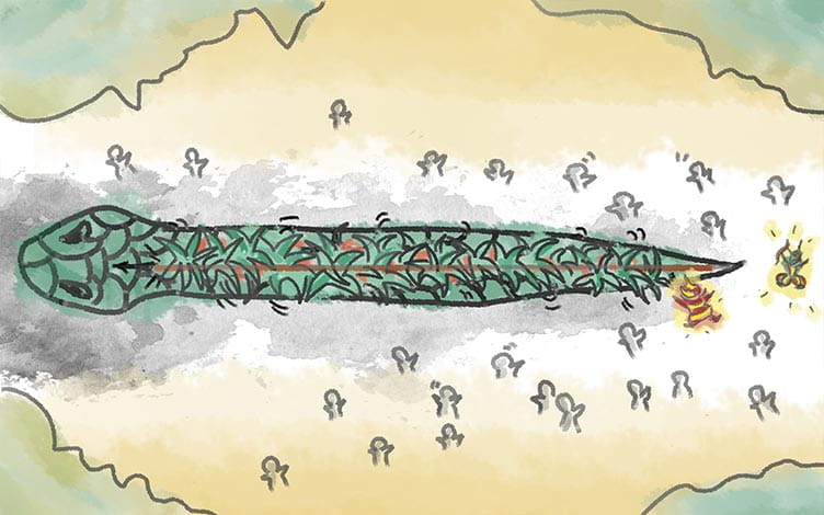 Bagaimana dua orang adik-beradik lelaki mengatasi kebijaksanaan seorang raja dan ular raksasanya.