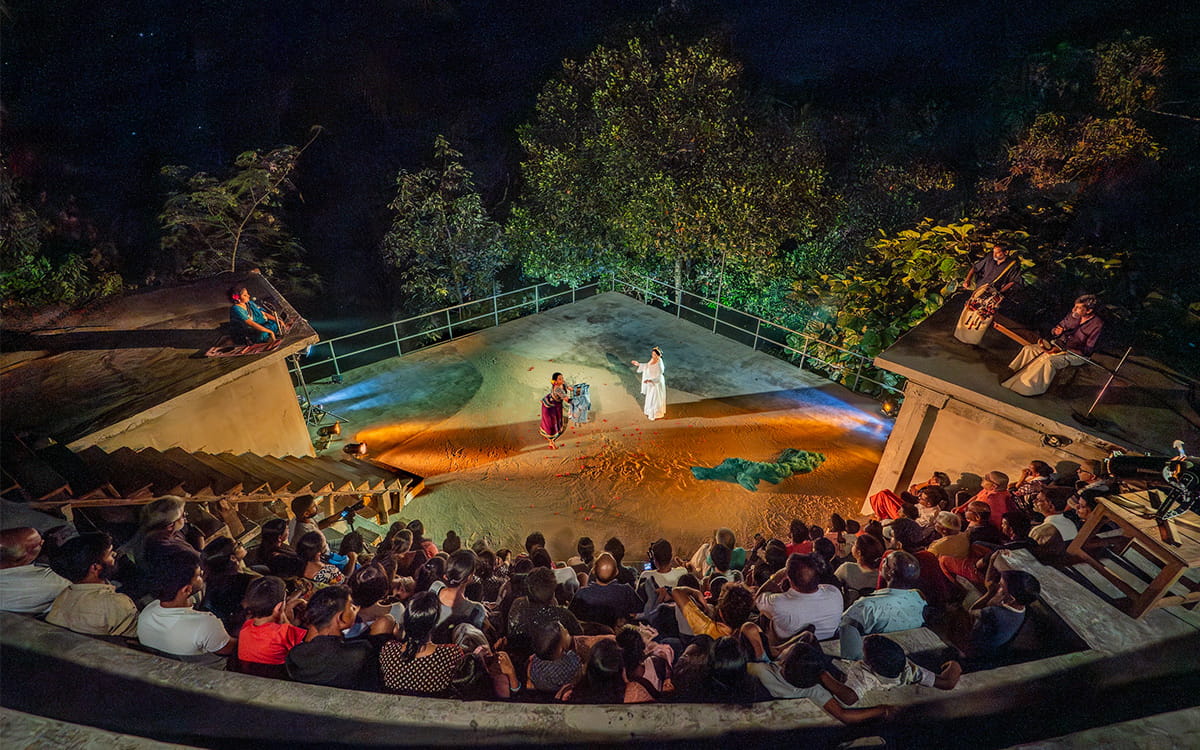 In 2023, it opened with a three-day festival of performances that attracted audiences from across India and the world. Sankar brought his vision to life through physical labour and collaborative partnerships with the local community. As an outsider from a city background, working with these communities deepened his intercultural practice through bridging vastly different urban and rural cultures.