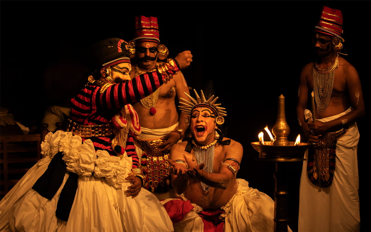 Sankar performing <em>kutiyattam</em> in the Bangalore premiere of G. Venu’s <em>Mrichchakatikam (The Little Clay Cart)</em>. Photo credit: Thulasi Kakkat