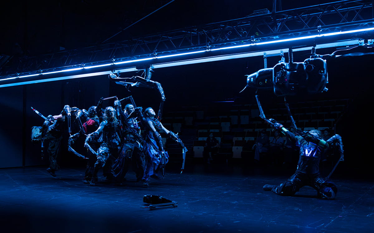 In U>N>I>T>E>D, the costumes included extra mechanical arms called exo-arms. They were really heavy and restrictive, and some dancers felt like they had to relearn how to move!