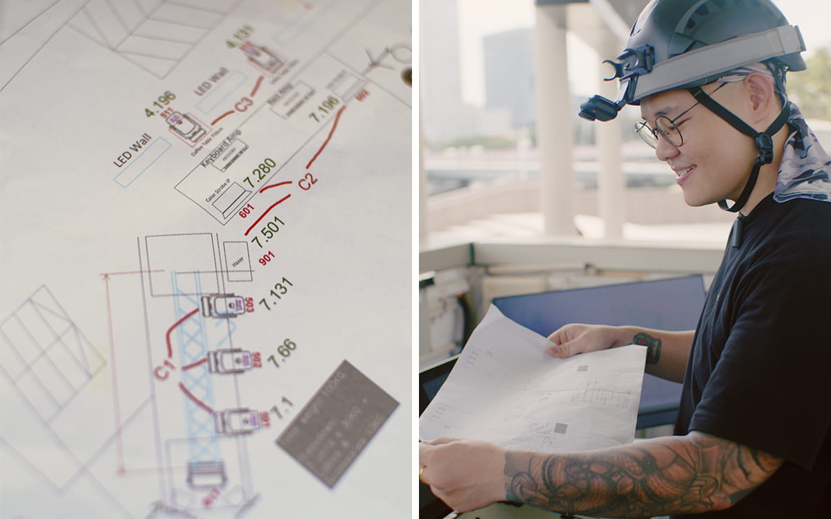 When Janson first started as a lighting technician, he knew almost nothing about lighting—he was even told off for being too slow! Instead of giving up, he took that as a challenge to learn more. He kept researching, practising and learning from the people around him. Over time, he became faster and gained more confidence and knowledge. He now shares the knowledge with his teammates, especially trainees under his wing.
