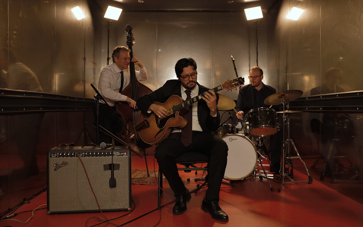 “Is it me or is the lift shaking?” said a bemused bassist Ari Roland as the trio ended the first song, a comment which triggered some laughter from everyone present. His partners-in-charm, lead guitarist Pasquale Grasso and drummer Keith Balla, were unfazed in this unusual performance space, just 12 hours after their sold-out show at Jazz in July 2024. With nary a blink, this well-oiled jazz trio quickly and effortlessly got the lift rocking (metaphorically) with two toe-tapping bebop tunes.