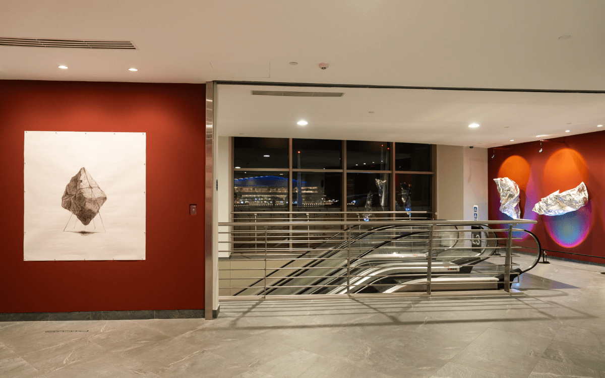 From the escalator, there is the series of abstract sculptures The Eternals I, II, III, IV which represent the shape of souls, transcending twilight and reaching beyond. As there are large windows flanking one side of the space, the sculptures’ appearances morph depending on the time of the day. To gradually approach via the escalator builds anticipation, drawing you into the artworks.