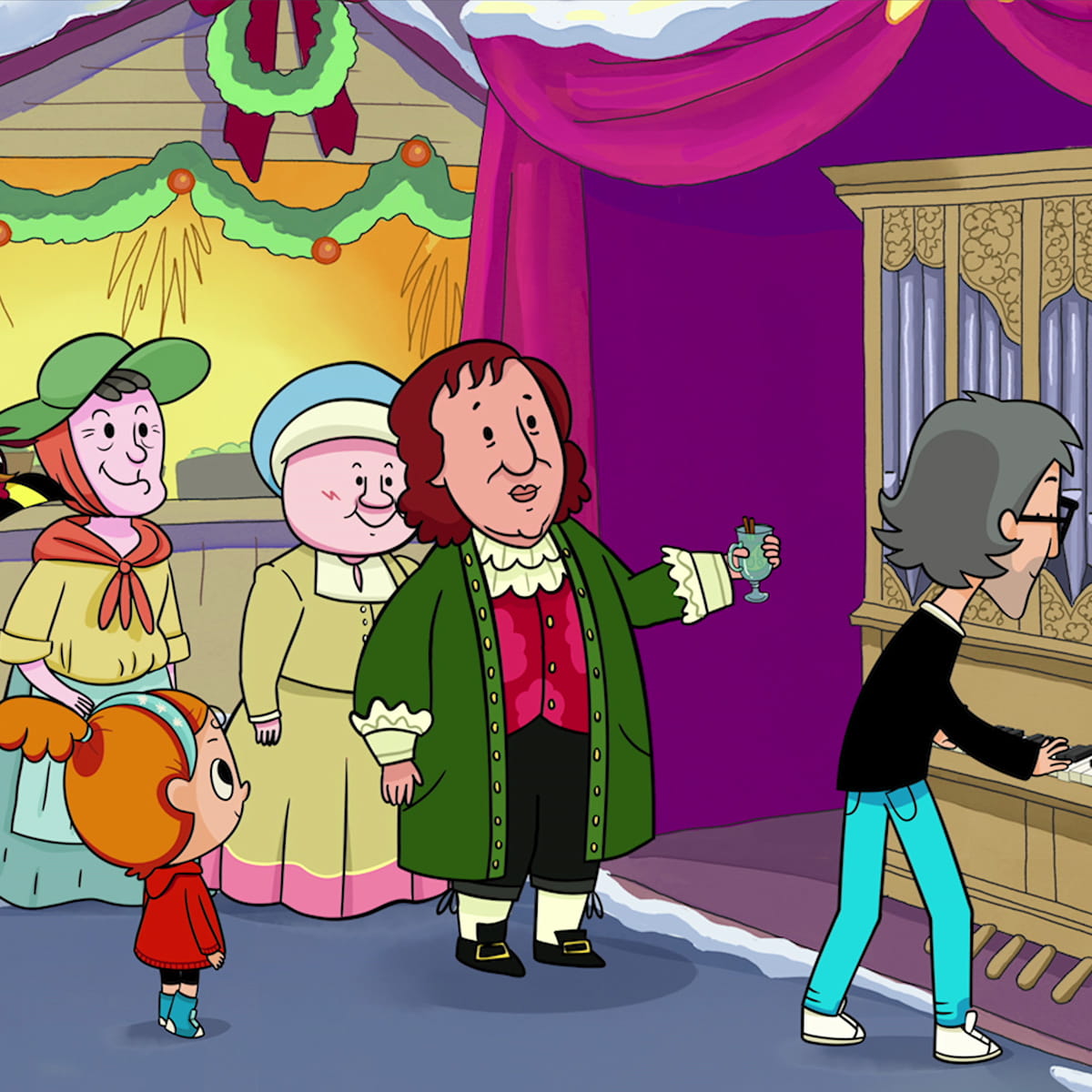 Join Jimmy and Lola on a magical wintertime adventure, as they travel back in time to help Buxtehude compose his brand-new Christmas tune!