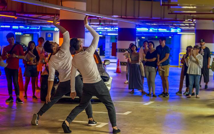Einstein in the Carpark featured Kun Opera performer Zhang Jun and musical actor George Chan at Huayi 2018. The production encouraged audiences to roam freely in Esplanade's B2 carpark.