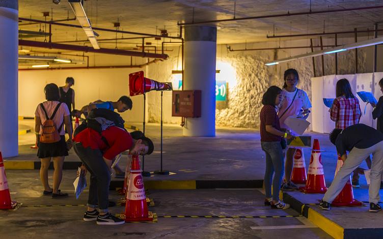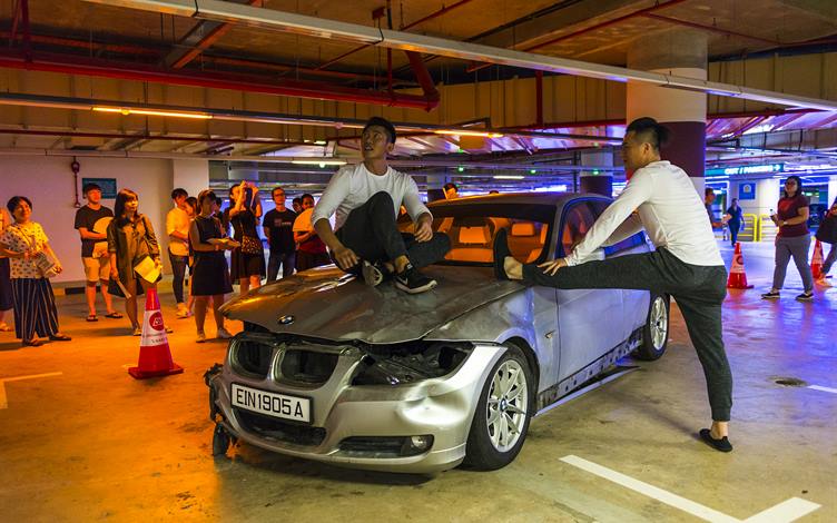 The following year, for Einstein in the Carpark, “I opened up the structure of time. The audience has to deal with their own time. It’s like backpacking on your own versus following a tour guide.” This year, FOUR FOUR EIGHT will be staged in a whisky bar at Esplanade Mall. The amount of freedom bestowed on the audience is simultaneously liberating and alienating. Halfway through my experience of Einstein in the Carpark, I observed that half the audience was attempting to follow the performers around the vast subterranean space, and the other half was sitting in the air-conditioned lift lobby, fanning themselves and looking at their phones.7