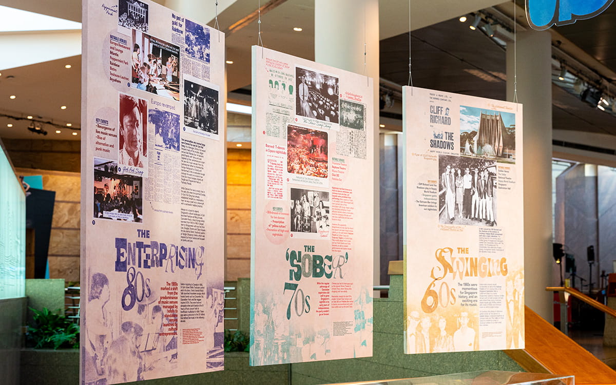 Home Grooves is a journey through the lived histories of Singapore's live music venues from the 1960s to present day. Held at the Esplanade Concourse, the exhibition took approximately a year to research and curate. It opened in August 2022 and will run for a year. We spent many hours on interviews with musicians and venue managers (four of these interview transcripts can be downloaded below), on fact-checking and corroboration, and on poring over newspaper articles and photographic archives across decades to piece together stories and ensure accuracy. Home Grooves opened at a time when live performance venues were gradually reopening after a tumultuous pandemic period. Alongside other recent retrospectives on Singapore’s creative past, such as the documentaries Scene Unseen and Class Acts, Home Grooves aims to recollect memories of live music spaces: their creation, their evolution and their endurance.