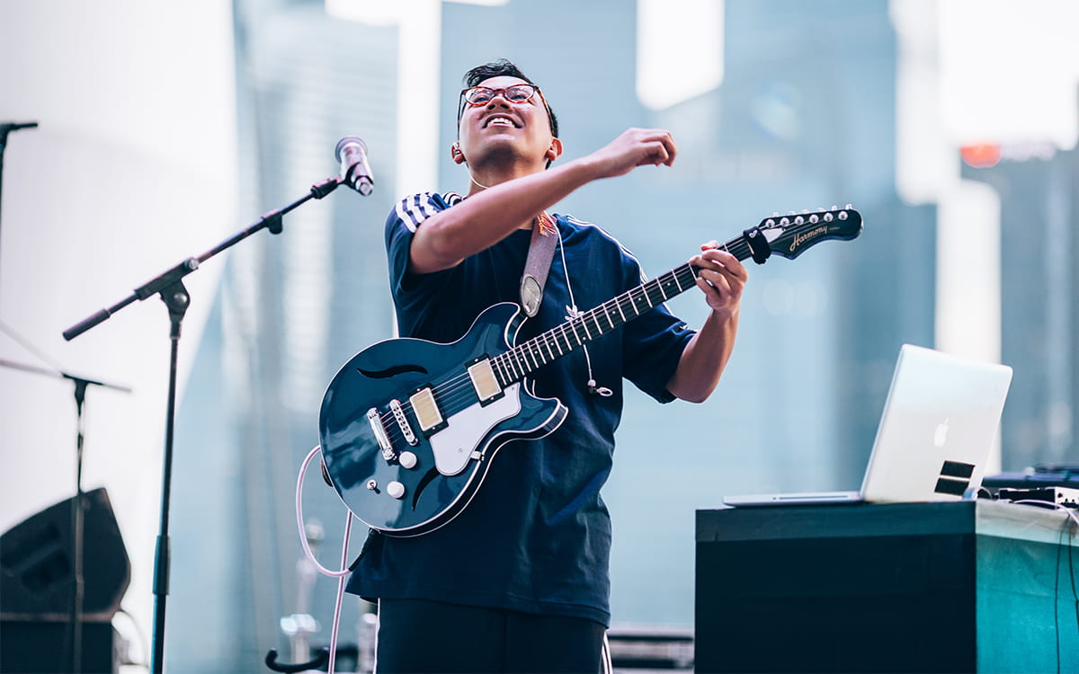 Singer-songwriter Ridz Razali, performing at DBS Foundation Outdoor Theatre.