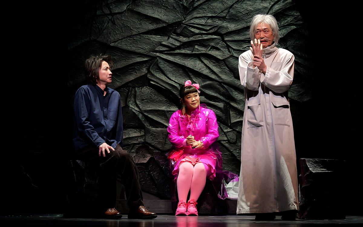 Tatsuya Fujiwara as Watashi, Miu Tomita as Pink, Narushi Ikeda as Doctor in the upcoming stage production of <em>End of the World and Hard-Boiled Wonderland</em>. Photo credit: Takahiro Watanabe