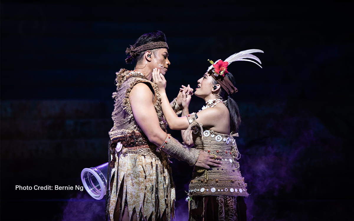 The Esplanade Theatre transforms into a mythical landscape with three different factions of characters: the dignified Sritanmira kingdom, the peaceful Maialena village, and Tohmah, the antagonistic band of pirates. Their incantatory rhythms evoke violence, heartbreak, passion and every other emotion in between.