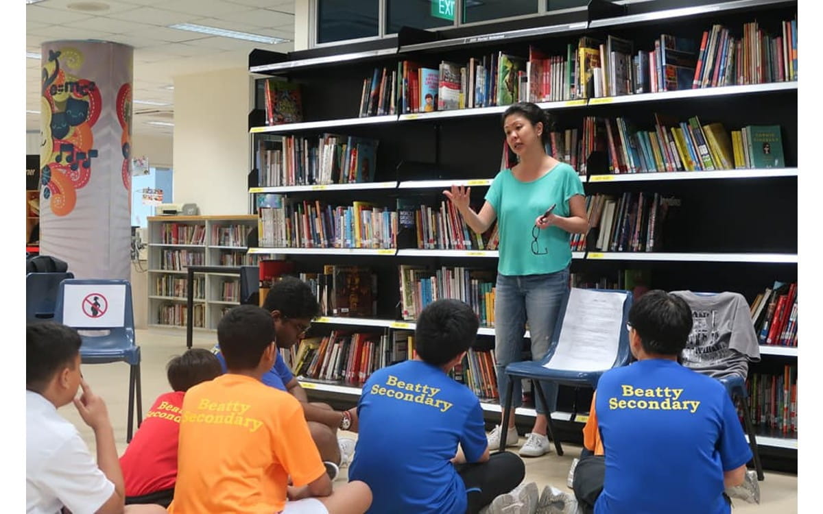 Jean Ng conducting a workshop for the M1 Peer Pleasure Theatre Youth Festival. Image credit: ArtsWok Collaborative