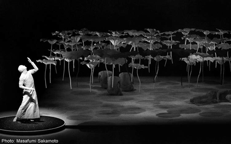 Amagatsu imbued his works with his myths and mystical experiences, which set his “dialogue with gravity” against sprawling backdrops and specially composed scores. Audiences are transported into different worlds and states of consciousness as time stands still or stretches infinitely in these stunning dioramas of his. In Tobari: As If In an Inexhaustible Flux (2008), dancers navigate the cosmos of life against a galaxy of stars, meditating on the meaning of existence. In Kagemi: Beyond the Metaphor of Mirrors (2000), they perform under a huge canopy of lotus leaves, reflecting on life and identity.