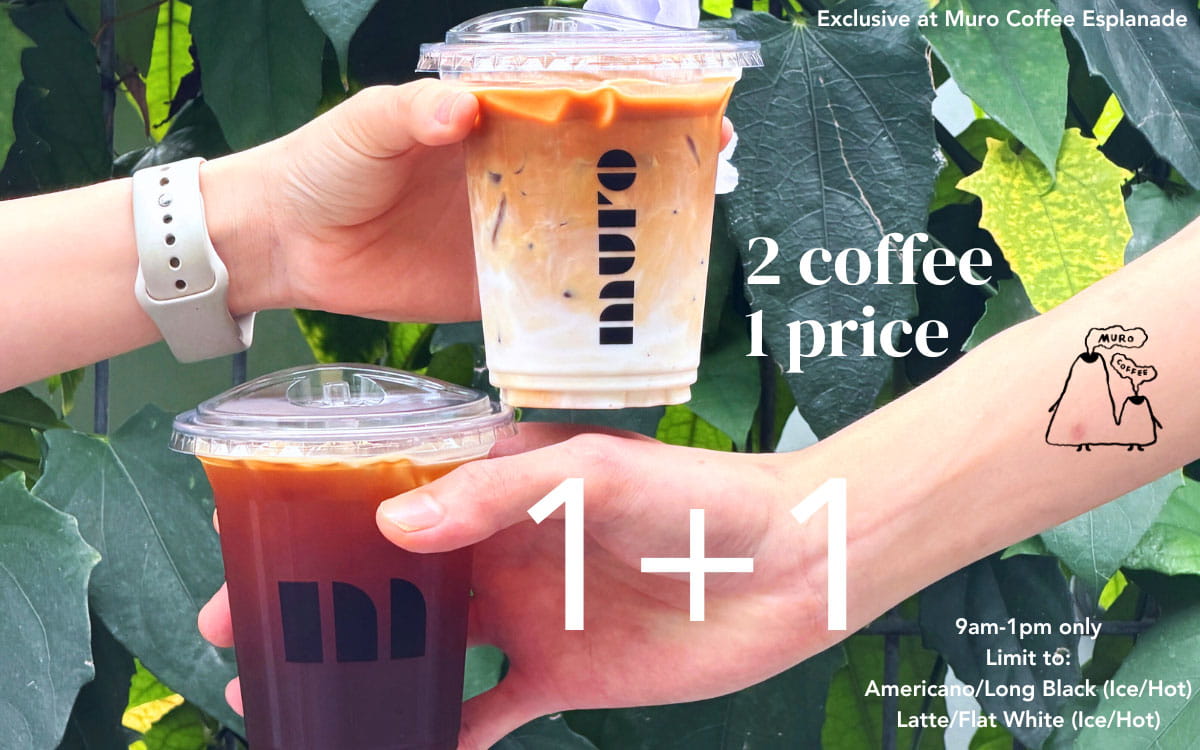 Good things come in twos! Enjoy 1-for-1 coffee at Muro Coffee Esplanade (#01-13E, Annexe) daily from 9am – 1pm from 2 Feb – 31 Mar 2026.