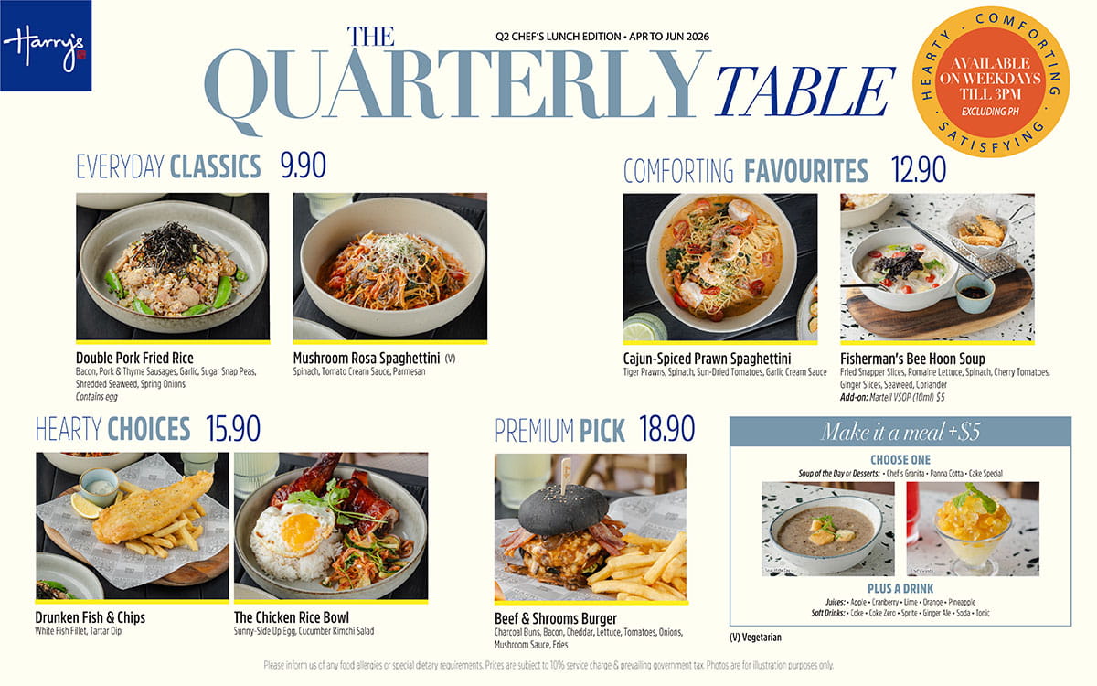 Weekday lunch options starting from $9.90, offering a great variety for quick lunches and afternoon meet-ups.