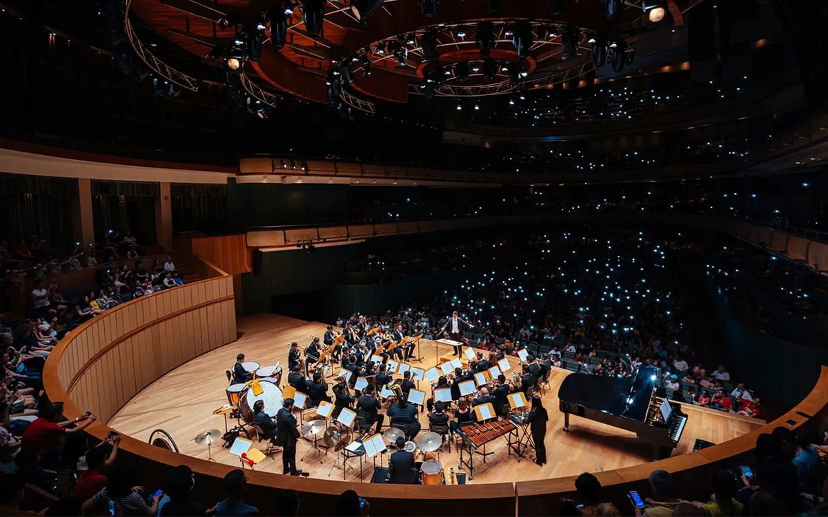 Image of interior of Esplanade Theatre seen from the perspective of the stage