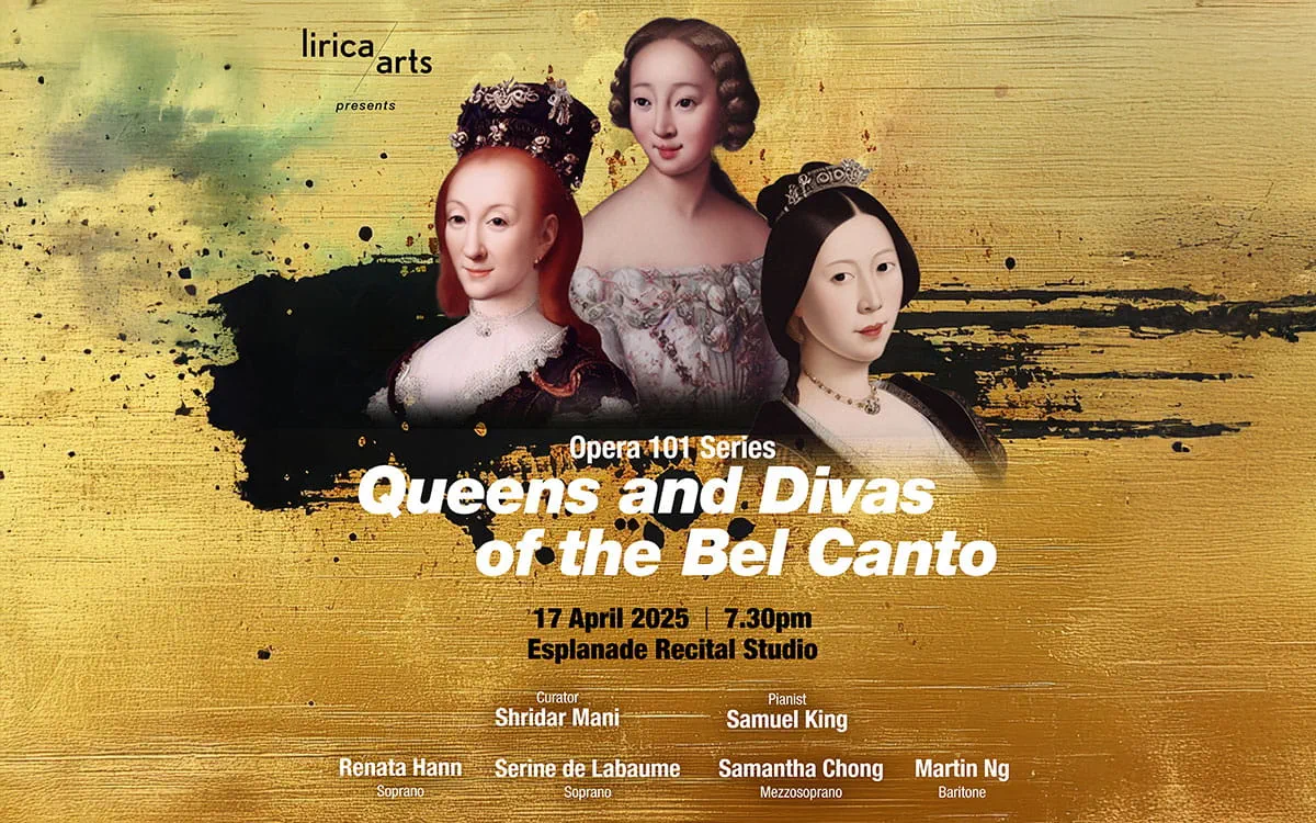 Following last year’s immensely popular, sell-out show Puccini - A Life in 7 Women, this third instalment - Queens and Divas of the Bel Canto - has curator Shridar Mani exploring the operas of the "bel canto" style. Originating in the early 19th century bel canto marked one of the biggest revolutions in Italian opera with paradigm shifts that changed the genre, setting the stage for what would become the standard repertory of the operatic canon today.