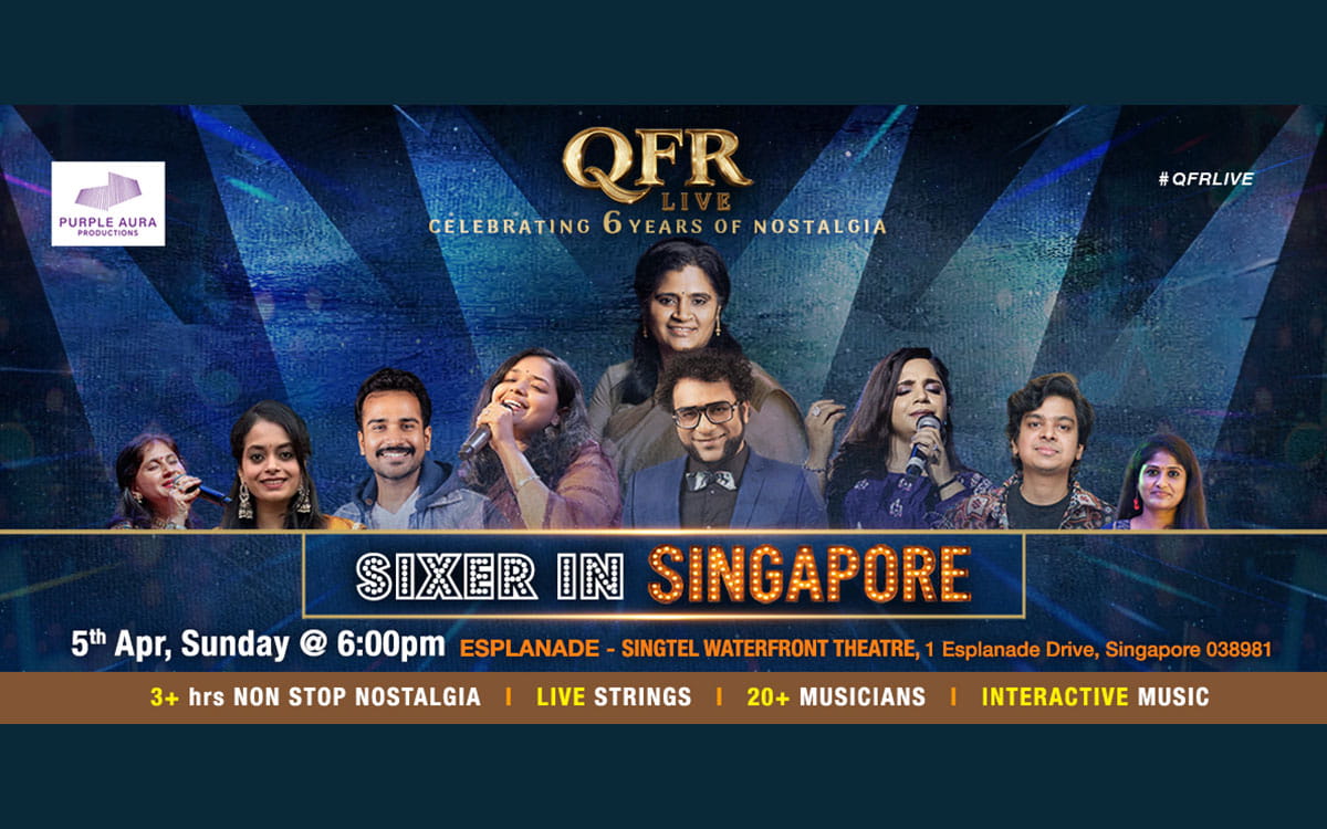 Experience the energy and elegance of the QFR Live concert, a live music performance that brings together contemporary sound, rich musical storytelling, and electrifying stage presence. Featuring talented performers and a carefully curated repertoire, QFR Live : Sixer in Singapore blends rhythm, melody, and emotion into an unforgettable live experience. Whether you're a fan of instrumental music, fusion sounds, or immersive live concerts, QFR promises an evening of powerful performances and finesse. Perfect for music lovers seeking high-quality live entertainment, the QFR Concert celebrates creativity, collaboration, and the joy of live performance.