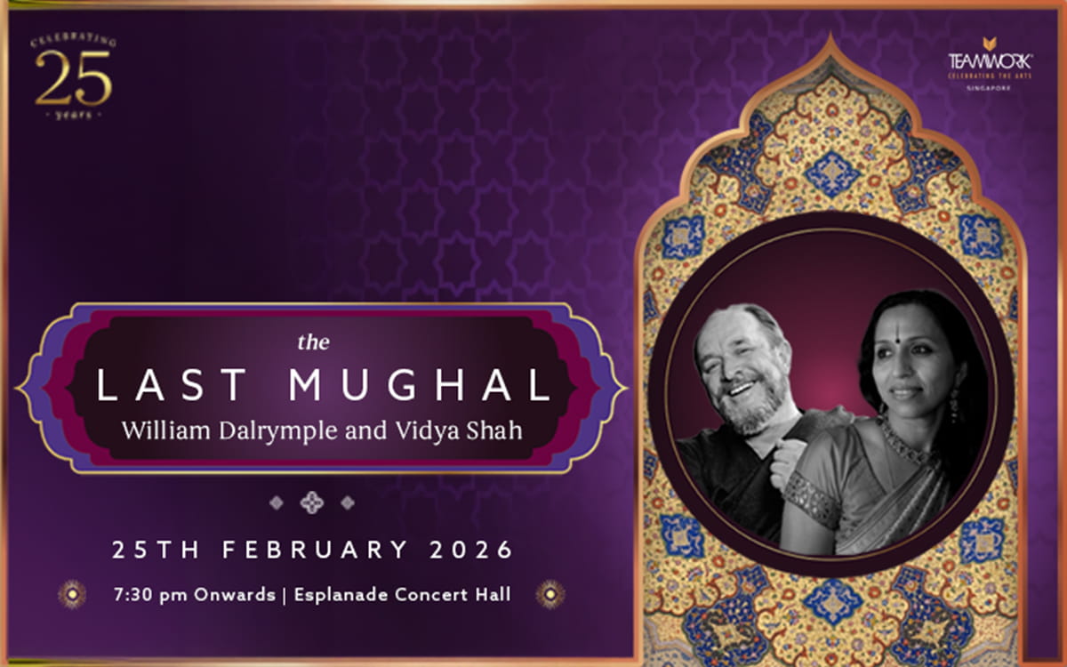 Enter a world of music and poetry with The Last Mughal, a performance that takes us back to a bygone era of matchless splendour – the period of the last Mughals. Based on the book of the the well known author William Dalrymple, William and the celebrated North Indian vocalist Vidya Shah celebrate the bygone era of India's last Mughals, bringing to life a world of emperors, poets, courtesans, politics, bayonets, intrigue and love through word and music.