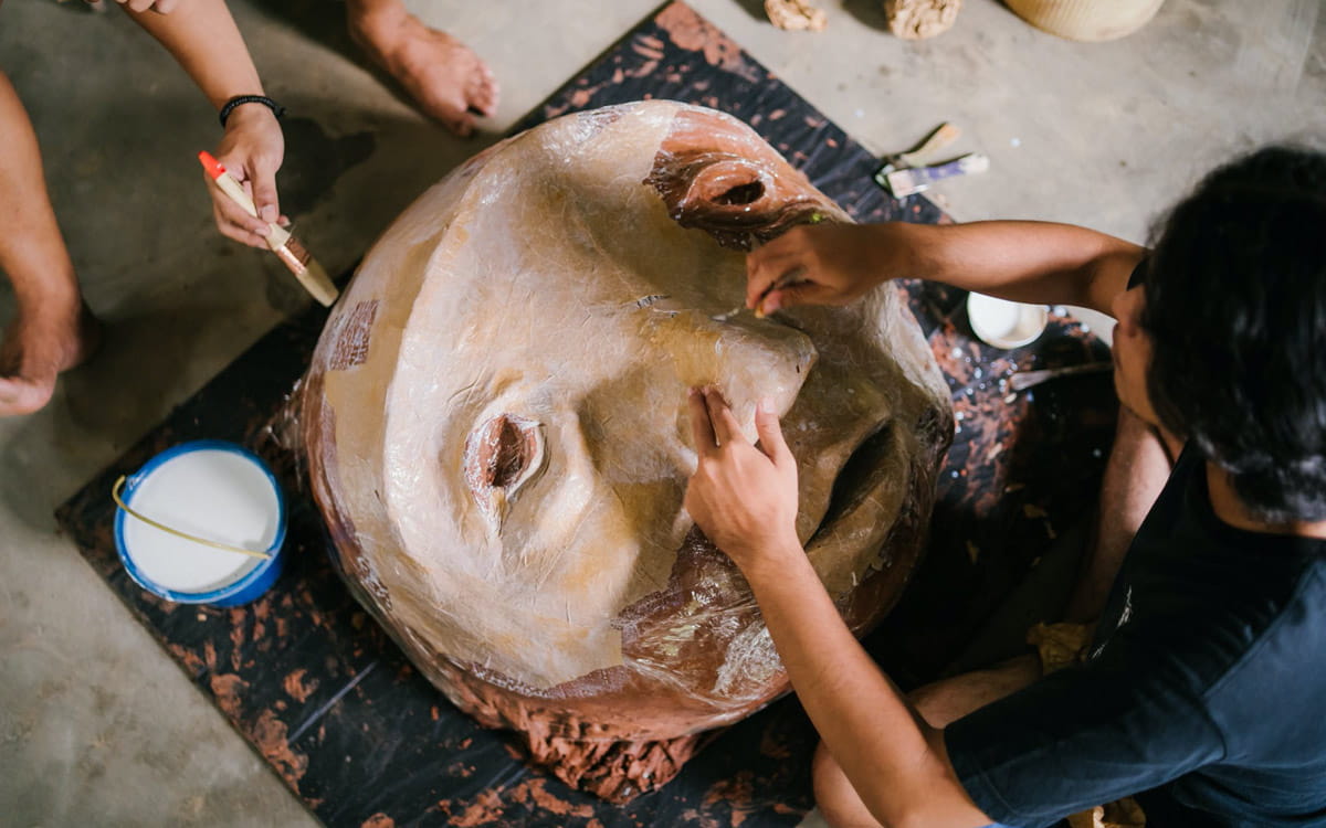 Papermoon Puppet Theatre was founded in April 2006 in Yogyakarta, Indonesia by Co-Artistic Director Maria Tri Sulistyani (Ria). She has since nurtured, developed, and expanded the company together with Co-Artistic Director Iwan Effendi, a visual artist and Papermoon’s puppet designer. Among other close collaborators, Papermoon works with a collective of puppeteers, which includes Anton Fajri, Pambo Priyojati, Beni Sanjaya, Muhammad Alhaq and Hardiansyah Yoga.