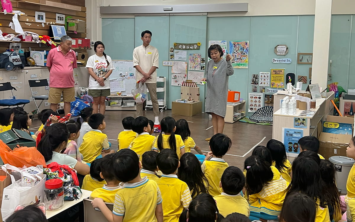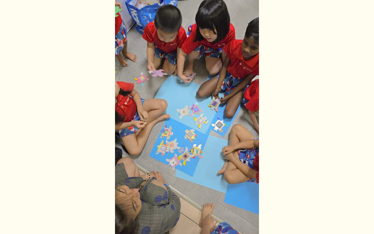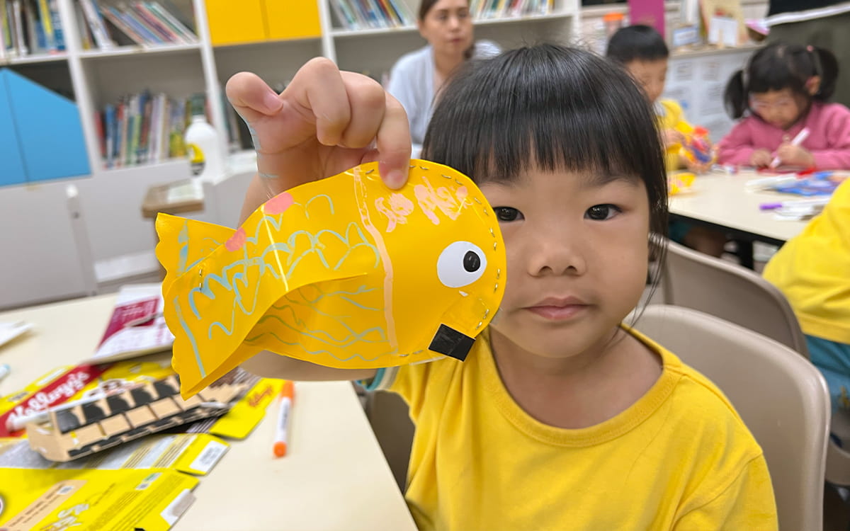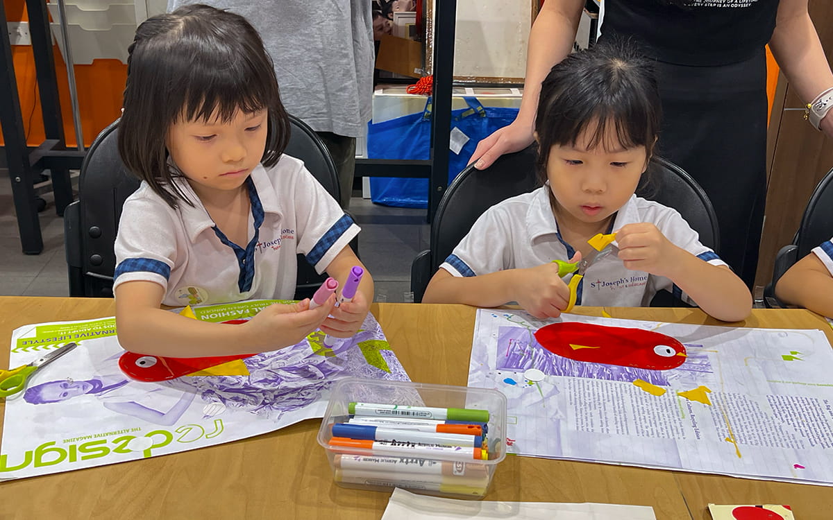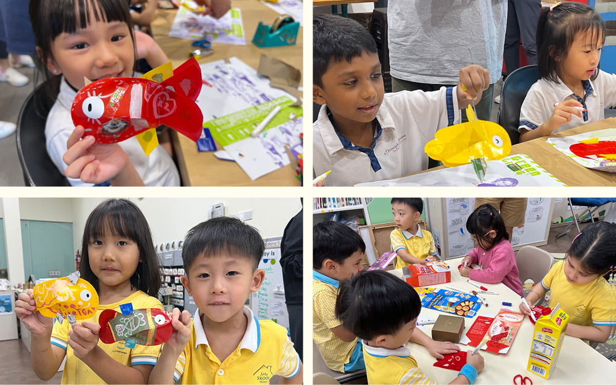 Artist Didier Ng worked with preschools to guide children in making sea creatures—fishes, sea turtles and jellyfishes—using off-cut plastics donated by factories and recycled cardboard brought from home. Here are our young creators at work!
