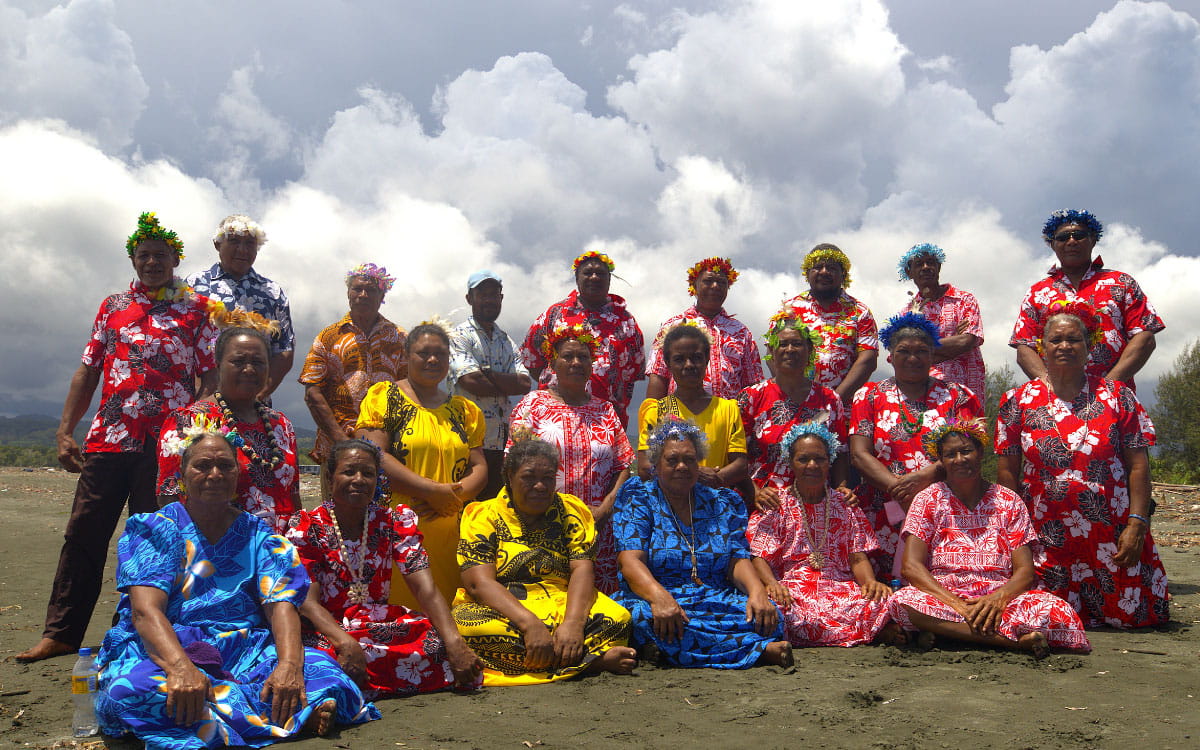 The women begin the melody, their voices bright and unwavering. The men follow, sometimes echoing, at other times in counterpoint, their voices blending in exquisite harmony. Sung in the Motu language, these songs weave bible stories with history, retelling how missionaries brought light and good news to the Papuan coastal shores.