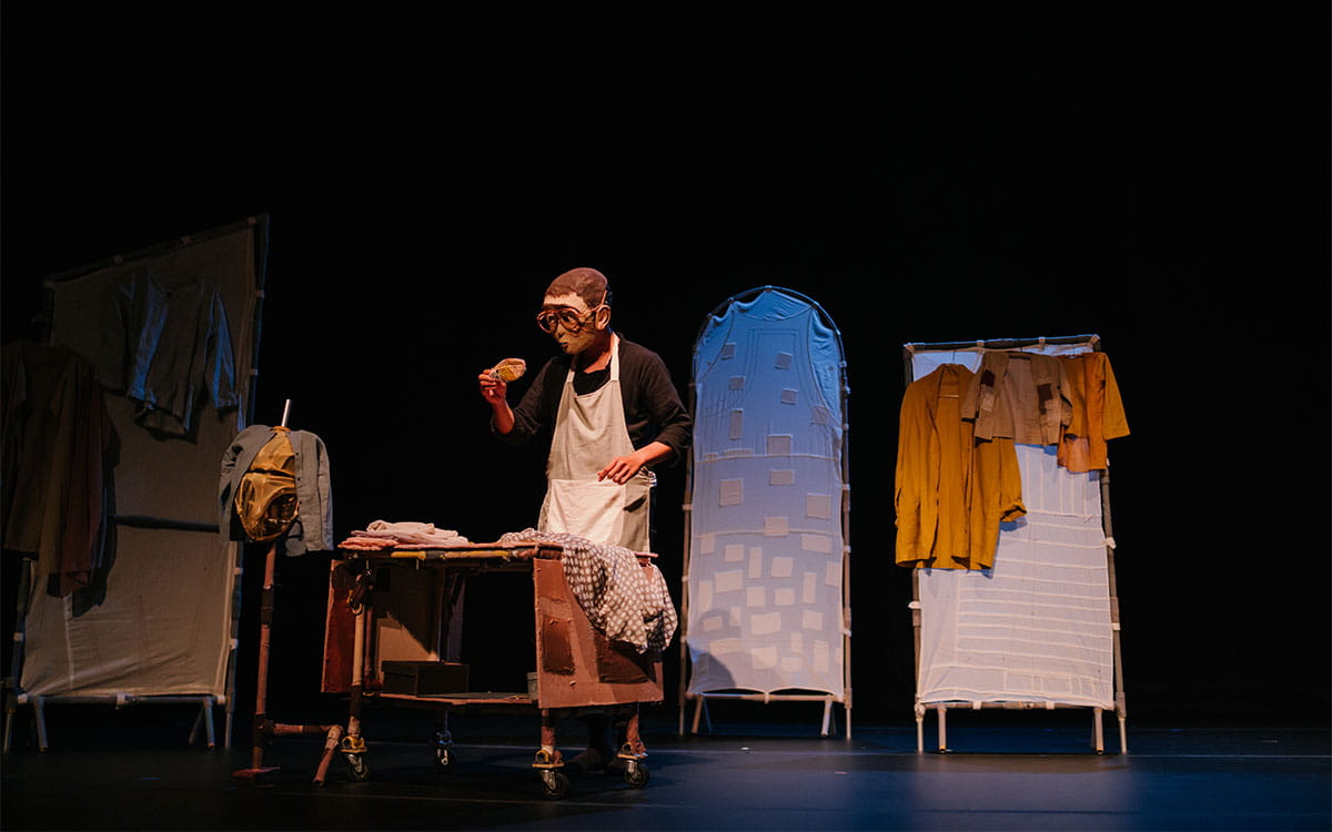PUNO: Sewing Memories bears all the hallmarks of a Papermoon production, one that audience around the world have come to love. This non-verbal play uses the universal language of puppetry and movement to tell the story, evoking emotion through stunning visual design and an original musical score. Several puppetry techniques are incorporated in the show—mask theatre and movements inspired by Japanese kuruma ningyo and a bunraku form of manipulation—each one carefully selected to move the story forward.