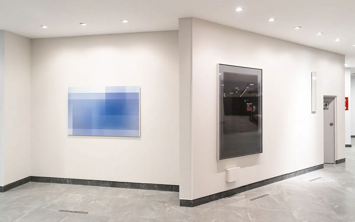 Open Plane invites a quiet attentiveness to light, shadow and movement as they unfold across Esplanade’s Community Wall. Through a process of photographing, layering and printing, lines and forms converge to create illusionistic spaces in shifting hues of blue, grey and black. The work reflects on how time lingers and leaves traces, shaping what—and how—we see.