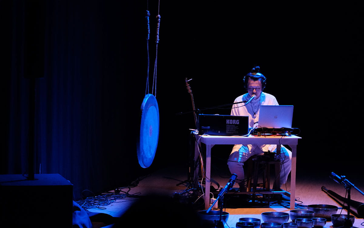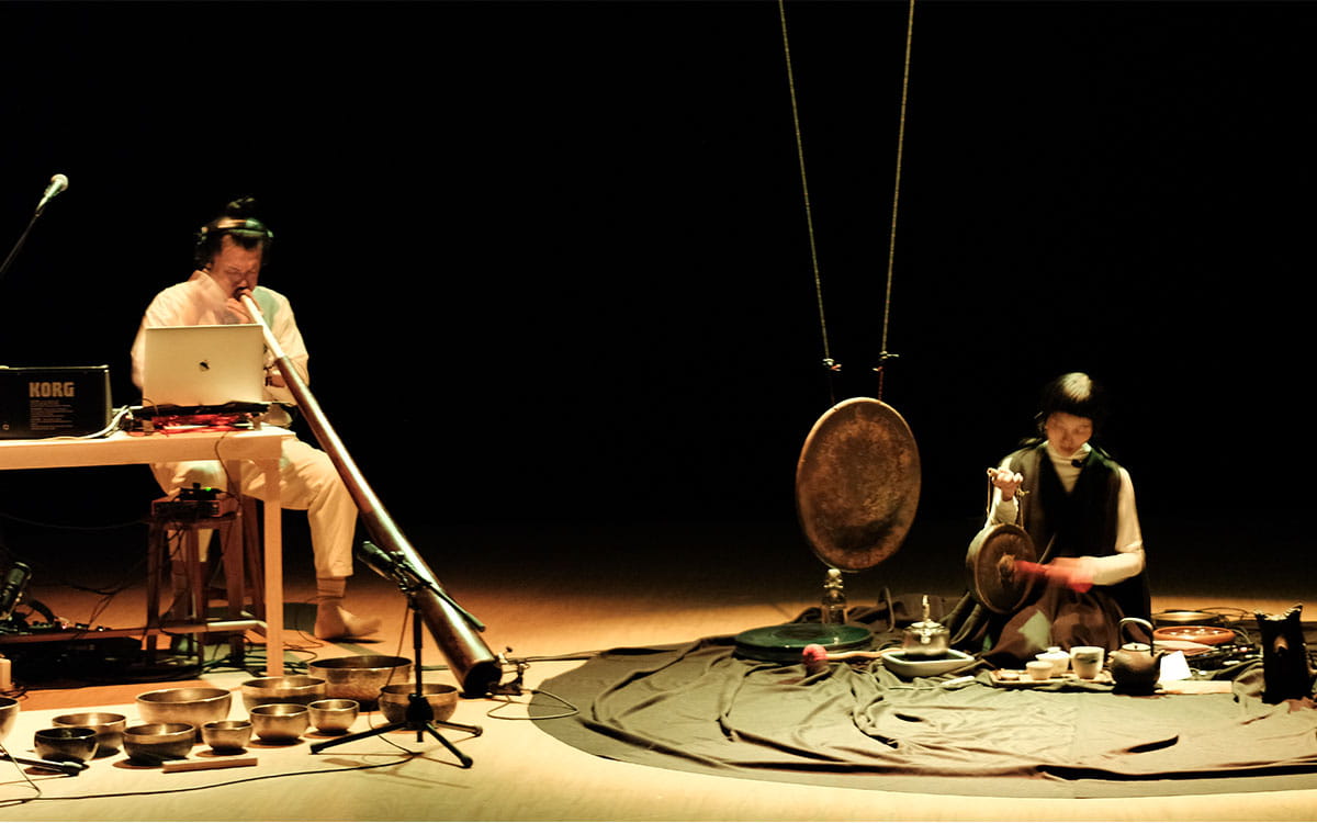 马来西亚的山门茶寮创办于2020年,擅长以跨媒介的方式,探讨身处于繁嚣城市中,内心不同的状态,在纷扰的环境寻找内心的疗愈。创办人符艾薇和李河健,各自在跨领域艺术与音乐都有卓越成绩,而本次演出的打击乐部分也请来经验丰富的唐永豪加入。